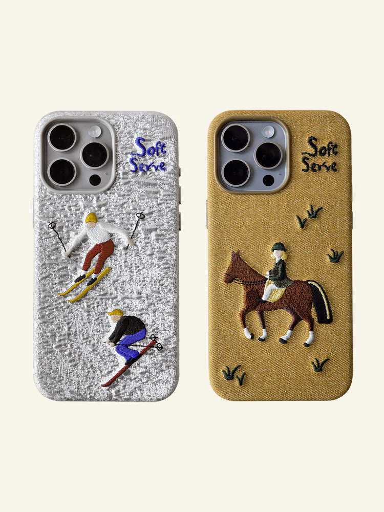 Skiing & Walking Puppy Embroidered Phone Case